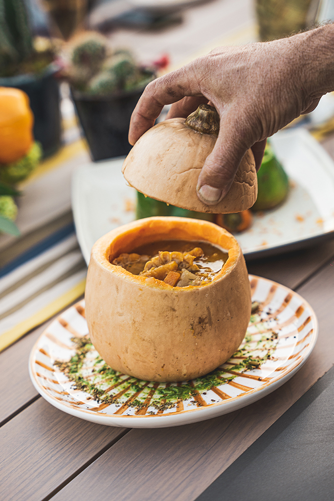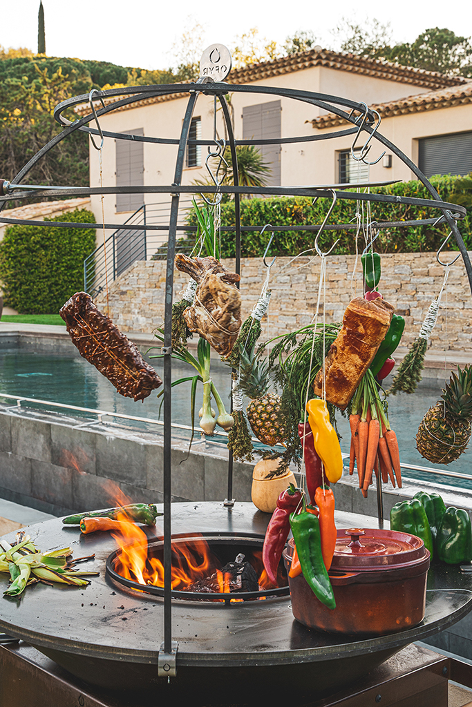 Les gourmets peuvent ainsi découvrir un dôme de feu où bœuf, porc, poissons et légumes sont suspendus pour cuire doucement et s’imprégner des arômes subtils de fumée.