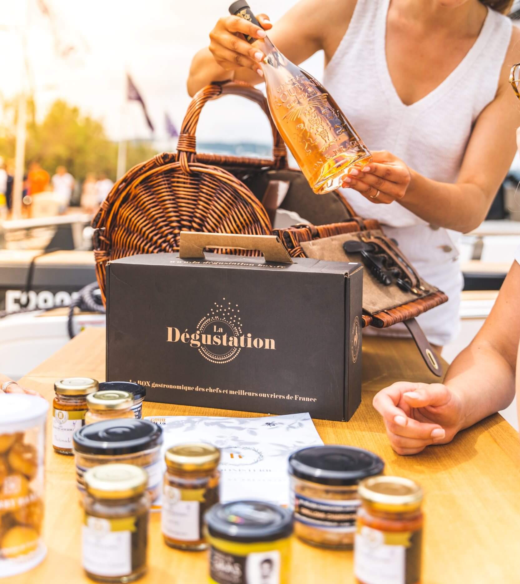 Lancés début 2019 par la « Dégustation BOX », ces coffrets nomades composés de produits de chefs et de MOF vous offre une pause gourmande et pratique. Il n’y a rien de plus agréable que se poser au soleil et déjeuner en mer en famille ou entre amis ! On ose des recettes de chefs originales, très savoureuses et de saison, pour un pique-nique chic réussi. COFFRET APERO NOMADE à terre ou en mer s’adresse à tous ceux qui veulent allier convivialité et simplicité ! L’apéritif est une vraie tradition française. Qu’il soit pris à domicile, dans un bar ou en mer, il fait partie intégrante de nos week-ends. En famille, en amoureux, entre amis, ce rituel qui marque la convivialité « à la française » se développe un peu plus, grâce à des produits de chefs et de MOF Meilleurs Ouvriers de France de plus en plus élaborés. La gastronomie est nomade avec la DEGUSTATION BOX